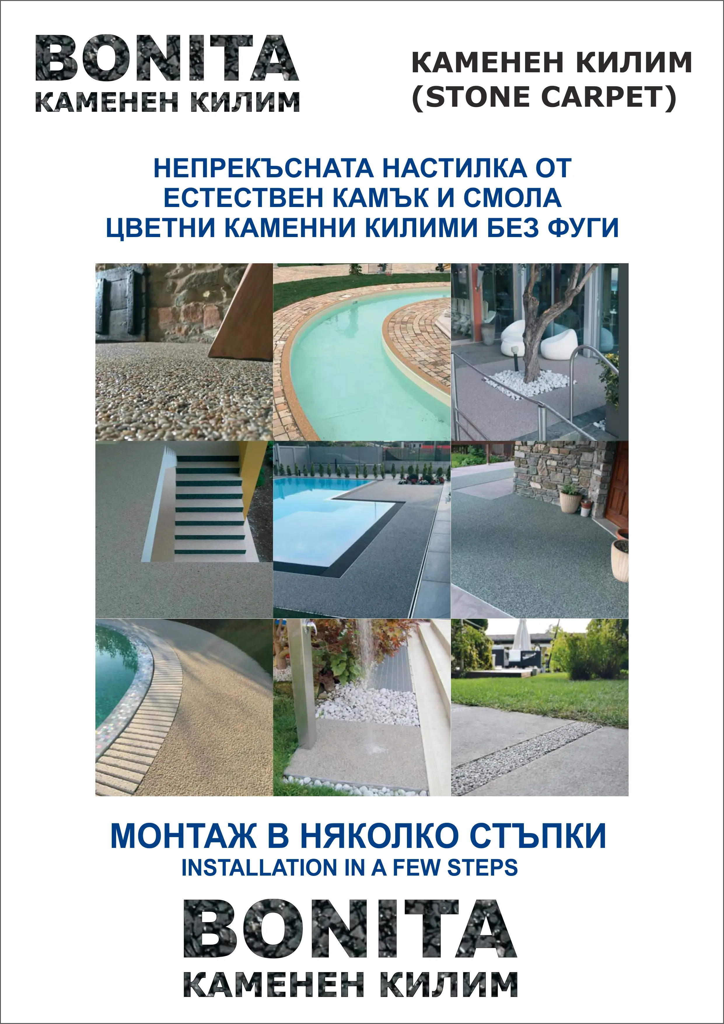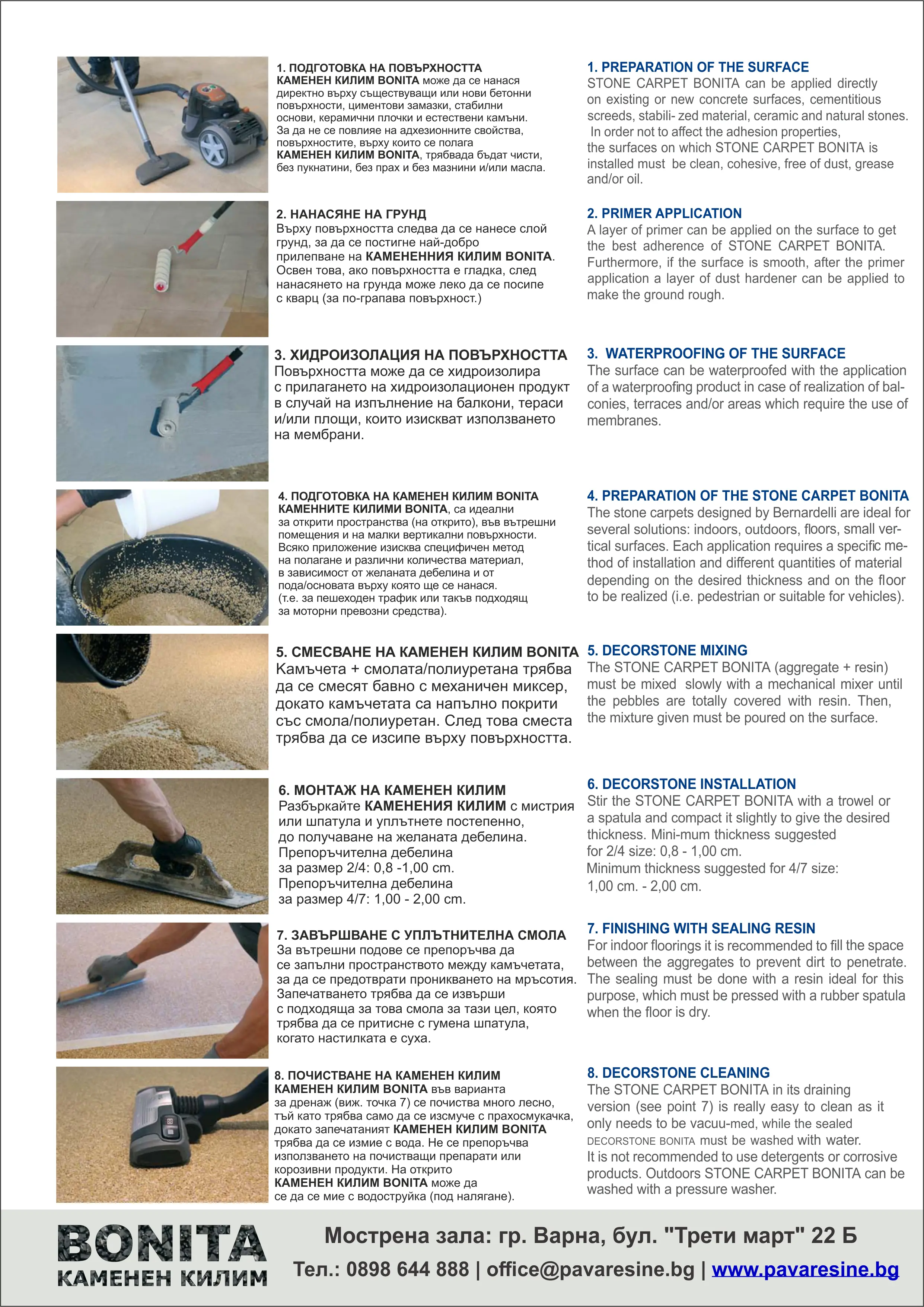 Инструкция за полагане на настилка от камъни.Непрекъсната настилка от естествен камък и смола / полиуретан(Цветен каменен килим без фуги)
